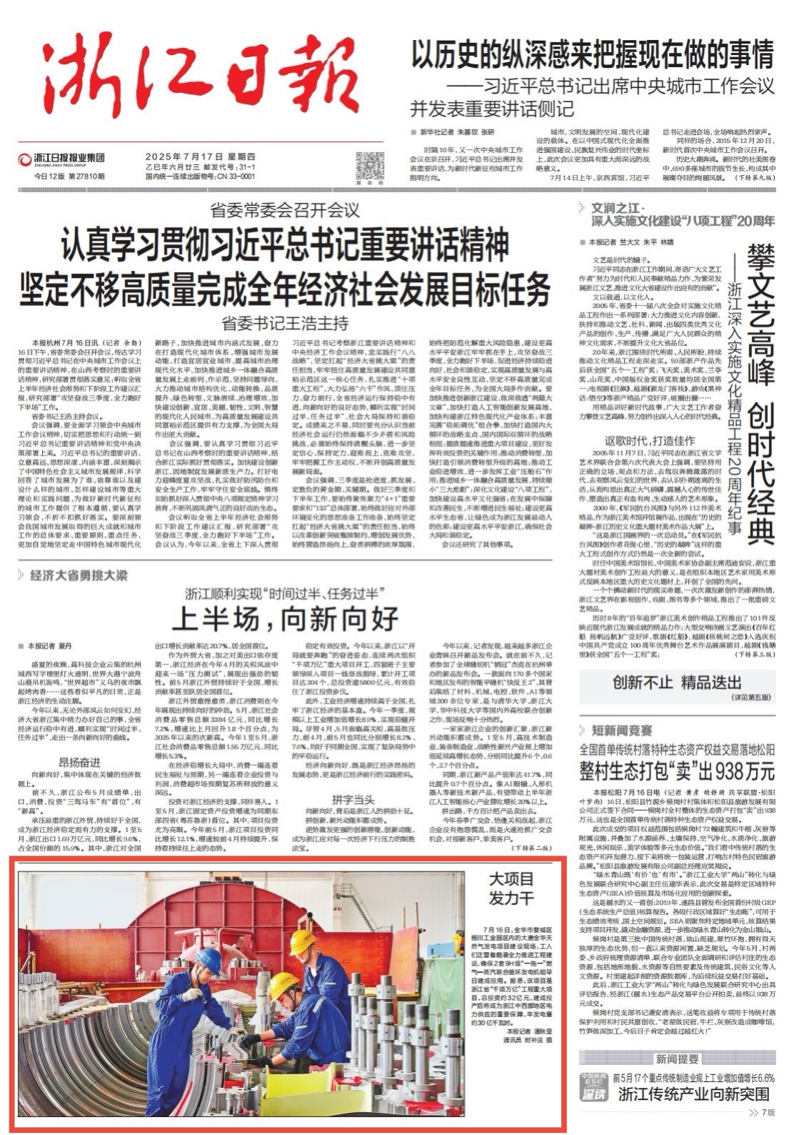 [浙江日报]2025-7-17-头版:大项目 发力干—大唐(金华)清洁能源有限公司