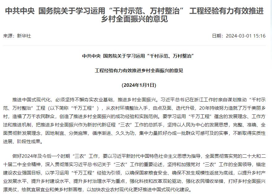 中共中央 国务院印发《乡村全面振兴规划(2024—2027年)...