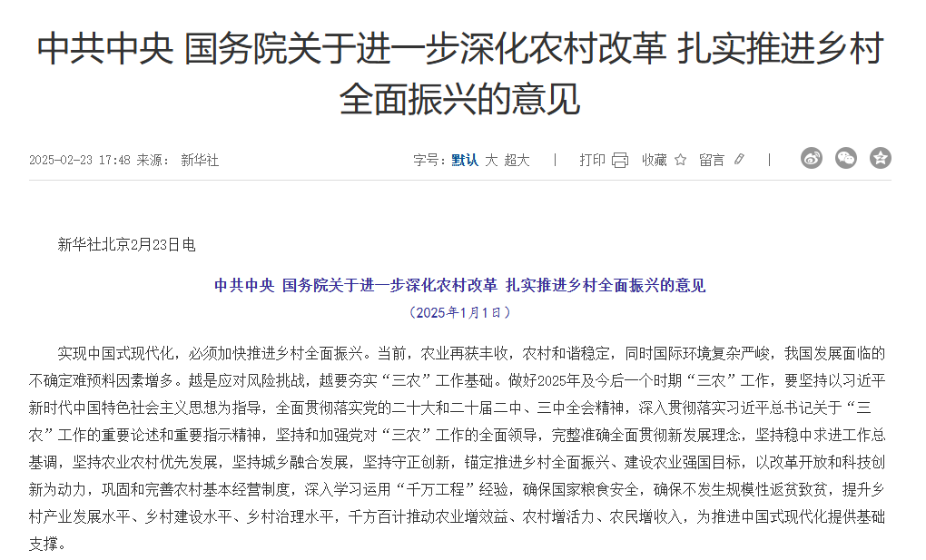 中共中央 国务院印发《乡村全面振兴规划(2024—2027年)》...
