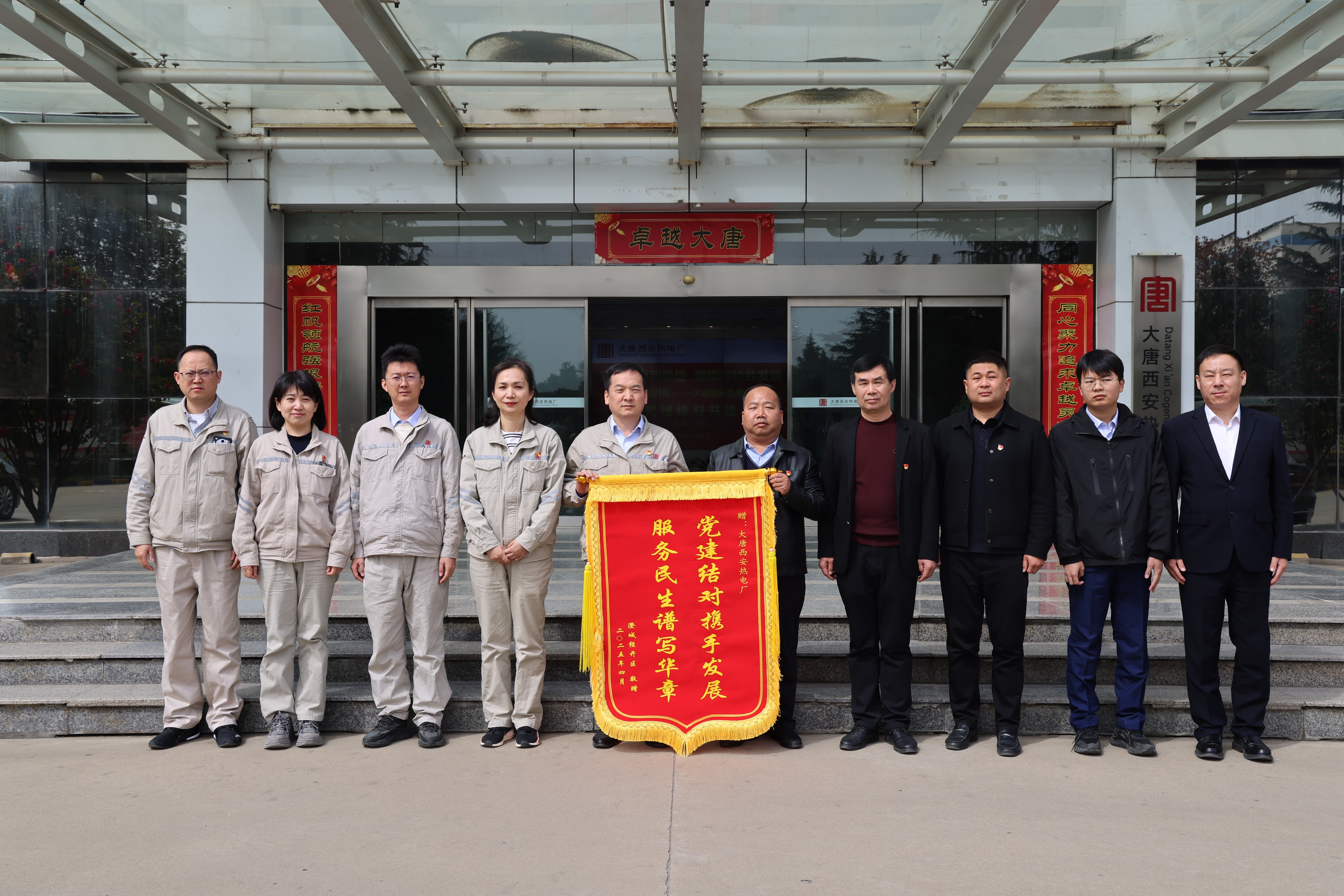 对该厂在2024年供暖季为澄城经开区提供的供热技术帮扶表示感谢,锦旗上“党建结对携手发展 服务民生谱写华章”的字样是对该厂乡村振兴工作的高度认可和肯定。